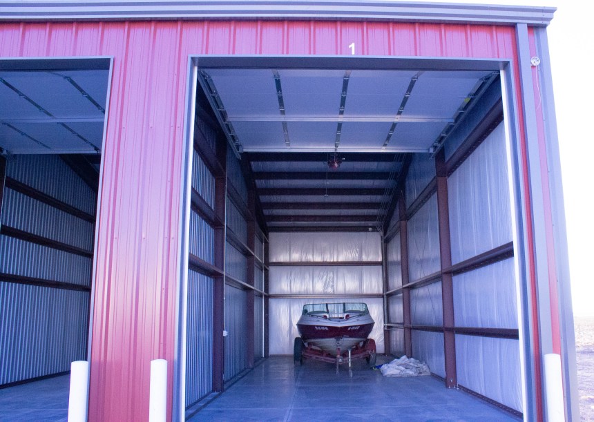 These units are fully enclosed, has concrete flooring, totally insulated including the doors, and automatic LED lighting. This unit includes a remote to open the garage door and a personal code to open the door manually.